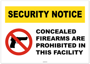 Security Notice Concealed Firearms are Prohibited in this Facility Sticker
