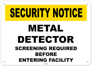 Security Notice Metal Detector Screening Required Before Entering Facility Sign