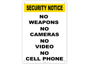 Security Notice No Weapons No Cameras No Video No Cell Phone Sticker