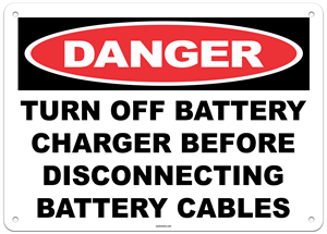 Turn Off Battery Charger Before Disconnecting Battery Cables Sign