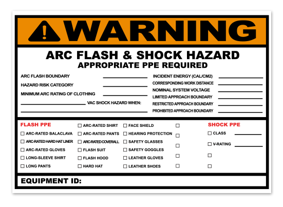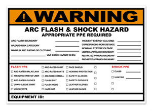 Warning Arc Flash & Shock Hazard Appropriate PPE Required High Tack Label
