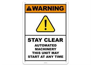 Warning Automated Machinery This Unit May Start at Any Time Sign