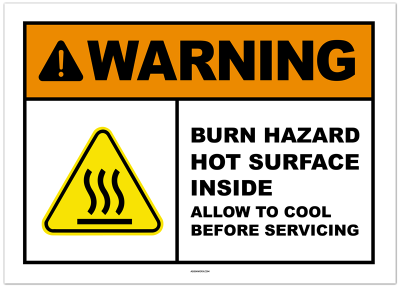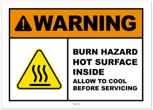 Warning Burn Hazard Hot Surface Inside Allow to Cool Before Servicing Sticker