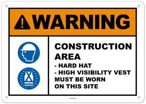 Warning Construction Area - Hard Hat - High Visibility Vest Must Be Worn On This Site Sign 2