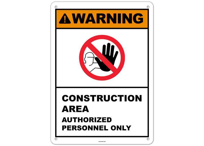 Warning Construction Area Authorized Personnel Only Sign