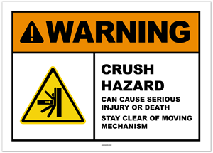 Warning Crush Hazard Can Cause Serious Injury or Death Stay Clear Sticker