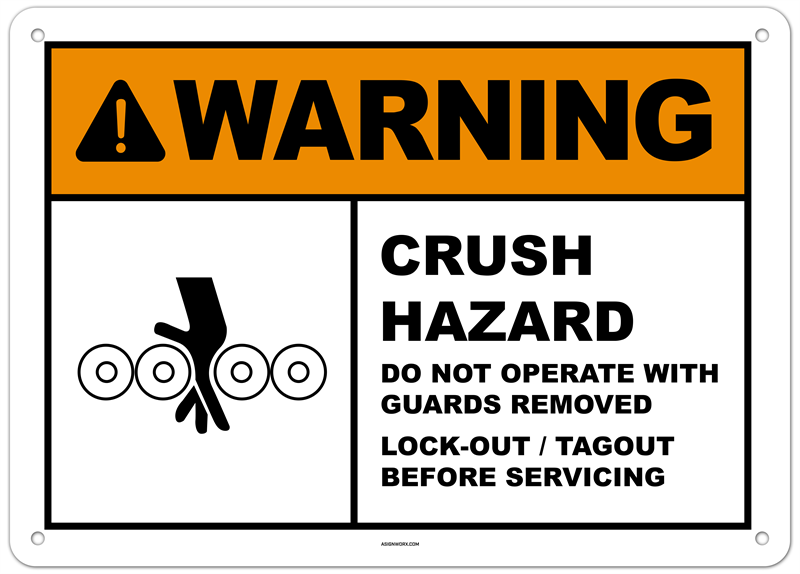Warning Crush Hazard Do Not Operate With Guards Removed Sign 2