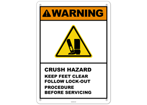 Warning Crush Hazard Keep Feet Clear Follow Lock-out Procedures Sign