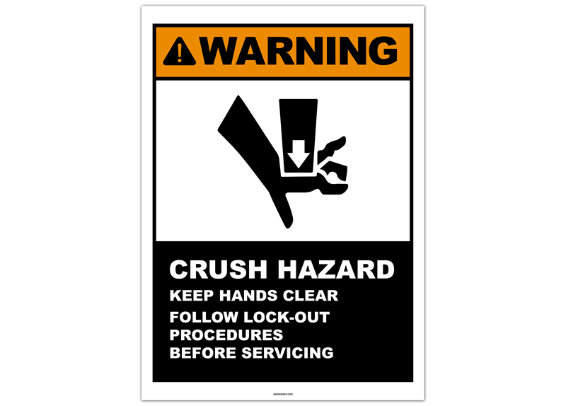 Warning Crush Hazard Keep Hands Clear Follow Lock-out Procedures Before Servicing Sticker