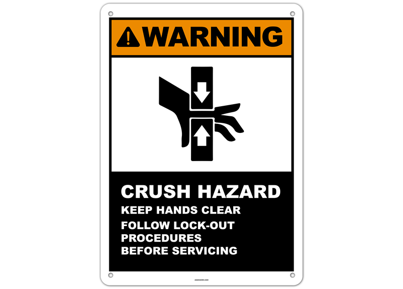 Warning Crush Hazard Keep Hands Clear Follow Lock-out Procedures Before Servicing Sign 2