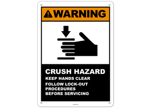 Warning Crush Hazard Keep Hands Clear Lock-out / Tagout Before Servicing Sign 3