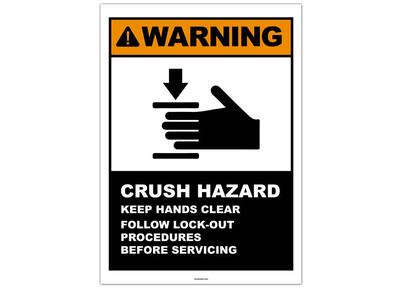 Warning Crush Hazard Keep Hands Clear Lock-out / Tagout Before Servicing Sticker 3