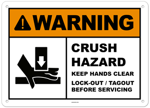 Warning Crush Hazard Keep Hands Clear Lock-out / Tagout Sign