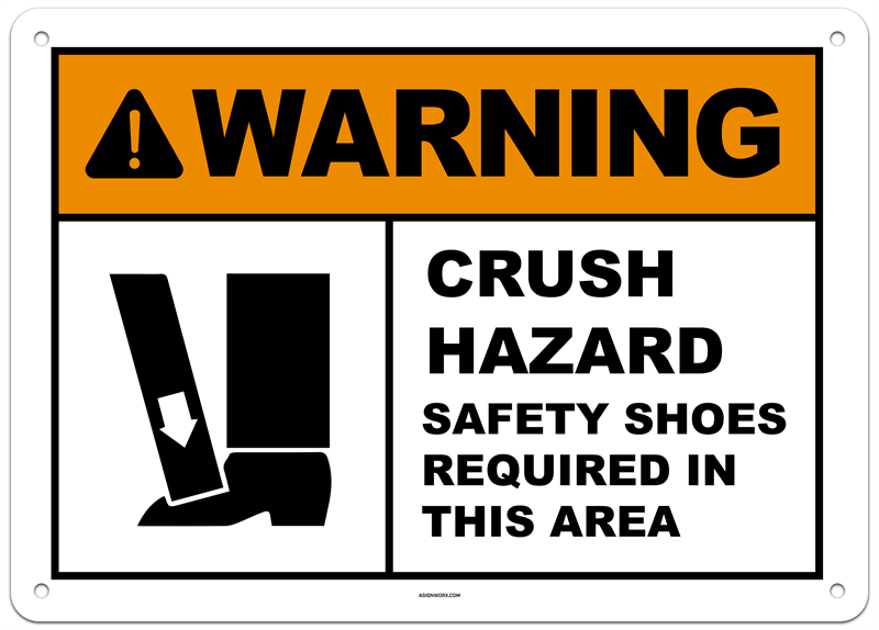 Warning Crush Hazard Safety Shoes Required in This Area Sign