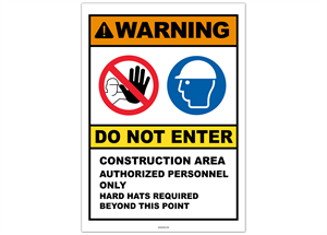 Warning Do Not Enter Construction Area Authorized Personnel Only Hard Hats Required Beyond This Point Sticker