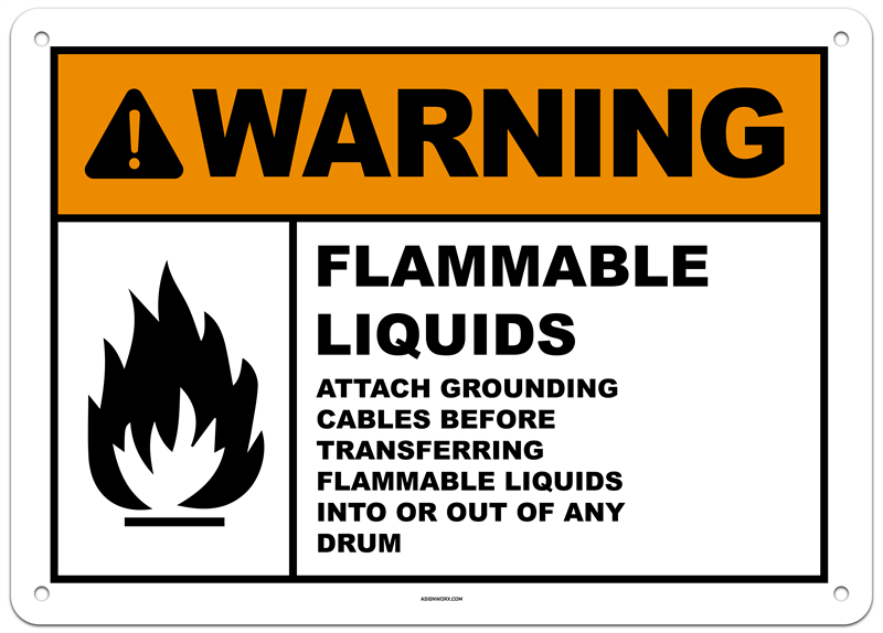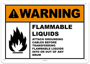 Warning Flammable Liquids Attach Grounding Cables Sign