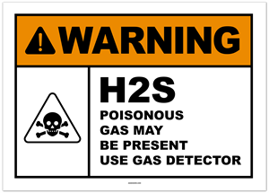 Warning H2S Poisonous Gas May Be Present Use Gas Detector Sign