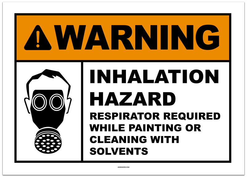 Warning Inhalation Hazard Respirator Required When Painting or Cleaning With Solvents Sticker