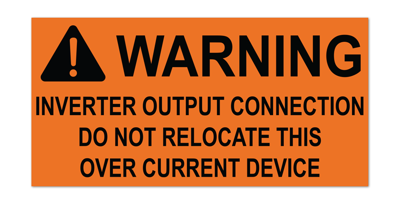Warning Inverter Output Connection Do Not Relocate This Over Current Device High Tack Label
