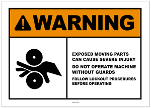 Warning Moving Parts Can Crush and Cut Do Not Operate With Guard Removed Sticker 2