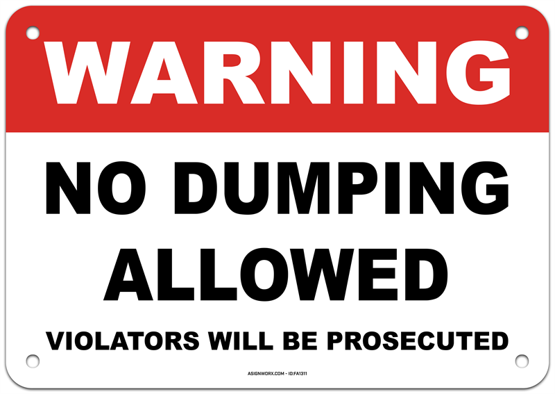 Warning No Dumping Allowed Violators Will Be Prosecuted Sign
