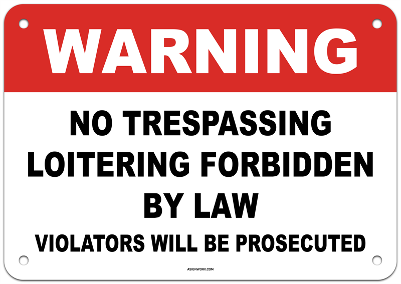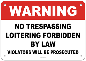 Warning No Trespassing Loitering Forbidden by Law Sign