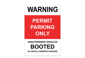 Warning Permit Parking Only Unauthorized Vehicles BOOTED At Vehicle Owner's Expense Sign