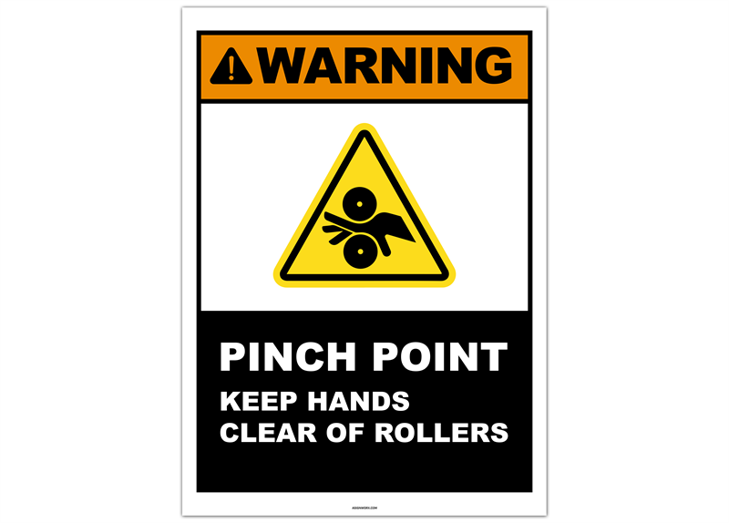 Warning Pinch Point Keep Hands Clear of Rollers Sticker