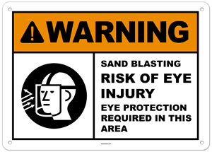 Warning Sand Blasting Risk of Eye Injury Eye Protection Required In This Area Sign