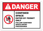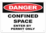 Danger Confined Space Enter Vessel by Permit Only Sign