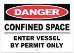 Danger Confined Space Enter Vessel by Permit Only Sticker