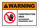 Warning Construction Area Authorized Personnel Only Sign
