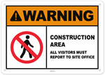Warning No Trespassing Construction Area Authorized Personnel Only All Visitors Must Sign In With The Office Sign 2