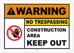 Warning No Trespassing Construction Area Keep Out Sign