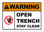 Warning Open Trench Stay Clear Sticker