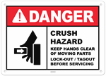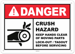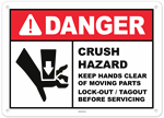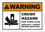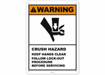 Warning Crush Hazard Keep Hands Clear Lock-out / Tagout Sign