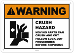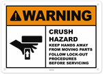Warning Crush Hazard Keep Hands Away From Moving Parts Sign