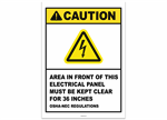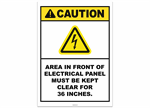 Caution Area in Front of Electrical Panel Kept Clear for 36 inches OSHA-NEC Regulations Sticker