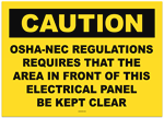 Caution OSHA-NEC Require Area in Front of Electrical Panel Must be Kept Clear Sticker