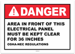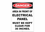 Area in Front of this Electrical Panel Kept Clear for 36 inches OSHA-NEC Regulations Sticker