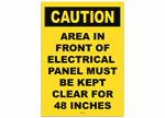 Caution Area in Front of Electrical Panel Kept Clear for 48 Inches Sticker