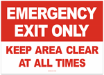 Emergency Exit Only Keep Area Clear At All Times Sticker