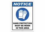 Notice Hand Protection Must Be Worn in this Area Sticker