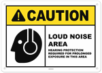 Caution Loud Noise Area Hearing Protection Required for Prolonged Exposure in this Area Sticker