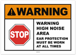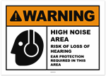 Warning High Noise Area Risk of Loss of Hearing Ear Protection Required In This Area Sticker