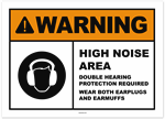 Warning High Noise Area Double Hearing Protection Required Wear Both Earplugs and Earmuffs Sticker