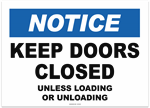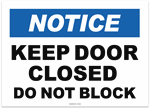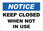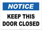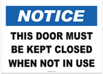 Notice This Door Must Be Kept Closed When Not In Use Sticker