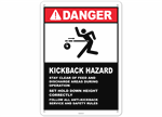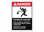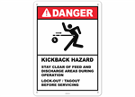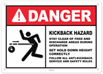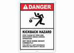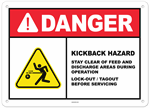 Danger Kickback Hazard Stay Clear of Feed and Discharge Areas During Operation Sign