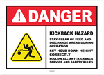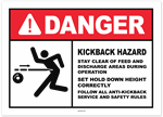 Danger Kickback Hazard Stay Clear of Feed and Discharge Areas During Operation Sticker