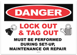 Danger Lock Out & Tag Out Must Be Performed During Set-Up Maintenance or Repair Sticker